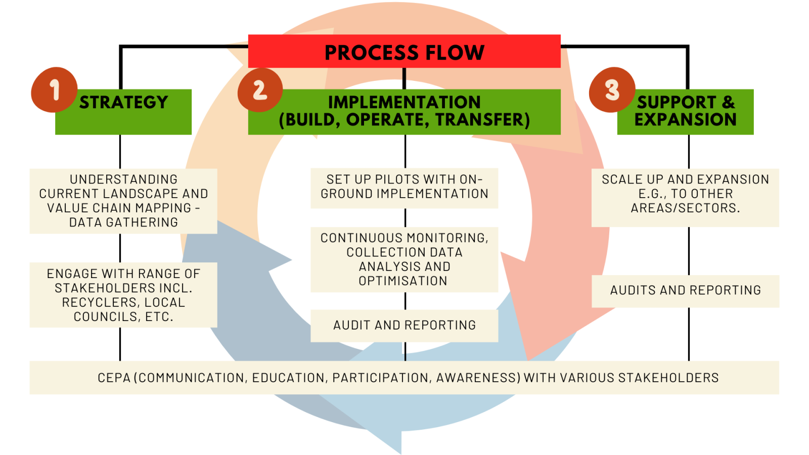 Our key effort is a door-to-door recycling collection program, where residents only need to place their recyclables in front of their homes according to a fixed schedule. This makes recycling convenient and accessible for households while ensuring high participation rates.